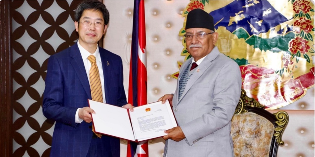 काठमाडौं, पुस १५ गते । प्रधानमन्त्री पुष्पकमल दाहाल ‘प्रचण्ड’लाई चिनियाँ प्रधानमन्त्री ली खछ्याङले नेपालस्थित चिनियाँ दूतावासमार्फत् पठाएकाे बधाई पत्र कार्यवाहक राजदुत वाङ जिनले प्रधानमन्त्री प्रचण्डलाई हस्तान्तरण गरेका छन् ।
