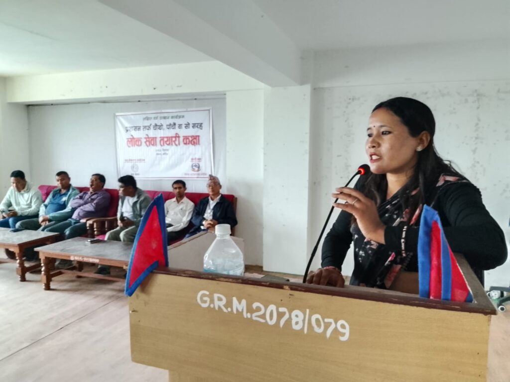 कार्यक्रममा बिगतका बर्षदेखि लोकसेवा तालिम दिदै आएका प्रशिक्षक कालिका चौधरीले उपस्थित तालिमका सहभागीहरु माझ आफ्ना भनाई राखेका थिए